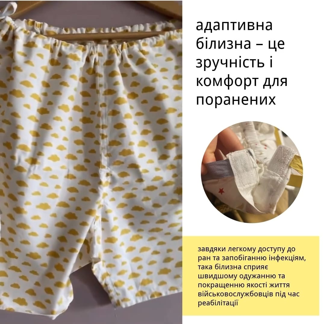Adaptive Unterwäsche bedeutet Bequemlichkeit und Komfort für Verwundete. Dank des leichten Zugangs zu Wunden und der Vorbeugung von Infektionen trägt solche Unterwäsche zu einer schnelleren Genesung und zur Verbesserung der Lebensqualität von Soldaten während der Rehabilitation bei. Diese Kleidung wird von ehrenamtlichen Kräften (zumeist Ukrainerinnen, die seit Kriegsbeginn unter uns weilen) genäht und angefertigt, mit denen wir vertrauensvoll zusammenarbeiten. Die angefertigten Kleidungsstücke versenden wir sämtlich in regelmäßigen Transporten direkt an Militärhospitäler in der Ukraine.